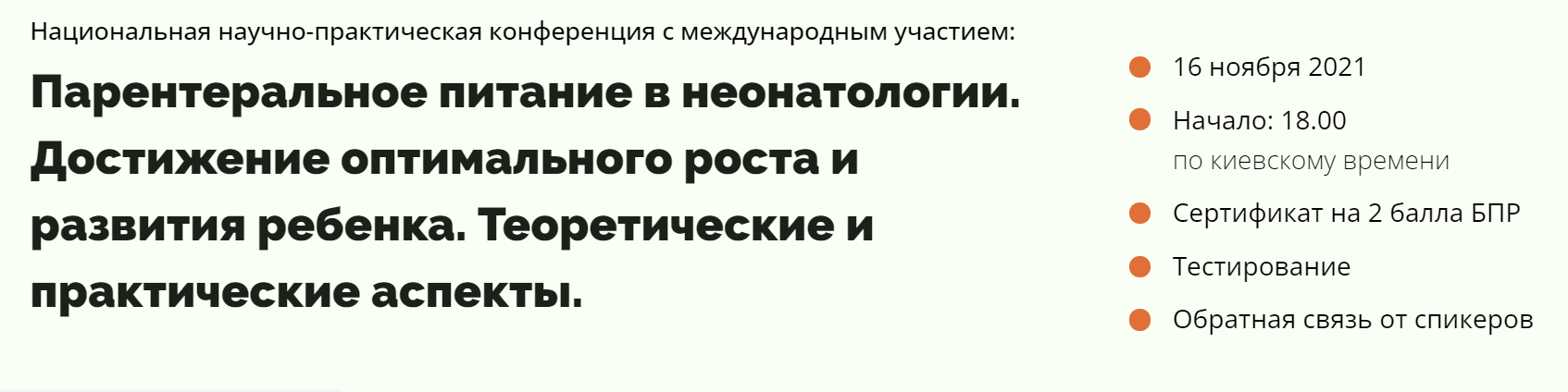 Вебінар "Парентеральне харчування в неонатології. Досягнення оптимального росту і розвитку дитини. Теоретичні і практичні аспекти", присвячений Міжнародному дню недоношених дітей, відбудеться 16.11.2021 р. о 18.00